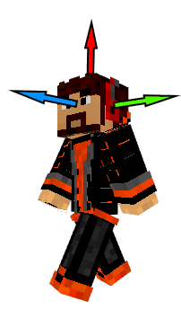 Avertissement : Si le joueur regarde le ciel, 2 blocs au-dessus de la tête du joueur correspondront à 2 blocs derrière son corps joueur car sa tête et son corps sont orientés différemment et nous parlons bien ici de l’orientation de sa tête. Le nombre est préfixé d’un accent circonflexe Note : Ce système de coordonnées ne fonctionne pas seulement pour placer un bloc ou sélectionner un bloc mais bien pour toutes autres commandes nécessitant une position pour paramètre. Note : Il est possible de mélanger les 2 premiers types de coordonnées dans un même paramètre (ex: 10 ~11 12).